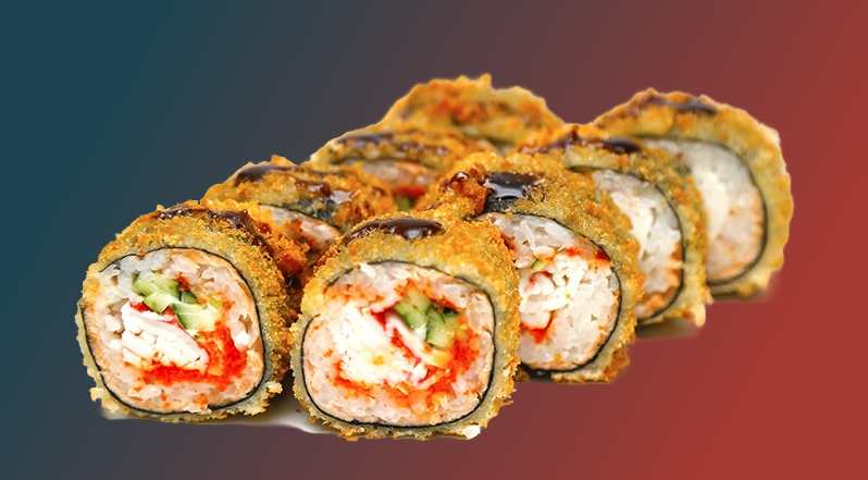 Жареный краб Жареный угорь Цезарь темпура Запеченный чикен Вулкан 2.0 Калик запеченный с крабом